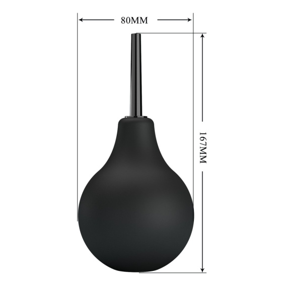 Gruszka do lewatywy ma sztywną, cienką, wyjmowalną dyszę wykonaną z gładkiego materiału ABS. Dysza ma lekko stożkowy kształt, aby było ją łatwo umieścić w odbycie. Gruszka wykonana jest ze sprężystej gumy klasy medycznej. Wymiary gruszki: długość całkowita, razem z dyszą - 16,8 cm, średnica gruszki - 8 cm, maksymalna średnica dyszy - 0,8 cm, pojemność gruszki - 224 ml.