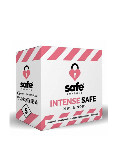 Prezerwatywy Safe Condoms Ribs&Nobs, wygodne, wysokiej jakości, prązkowanie i wypustki, lateks, 5 szt.