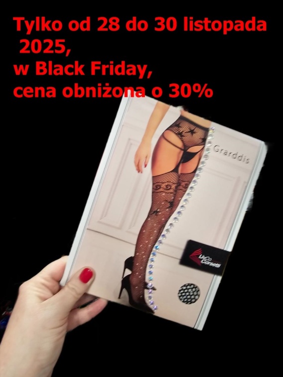 Strip panty to jakby pończochy (kabaretki, wzór w gwiazdki, pokryte błyszczącymi dżetami) połączone z pasem do pończoch. Strip panty to bardzo wygodne, ale również seksowne rozwiązanie. Materiał: poliamid, elasten. Rozmiar uniwersalny (XS-XL).